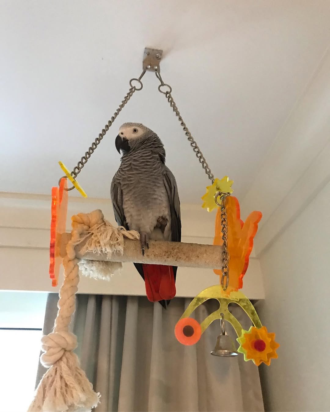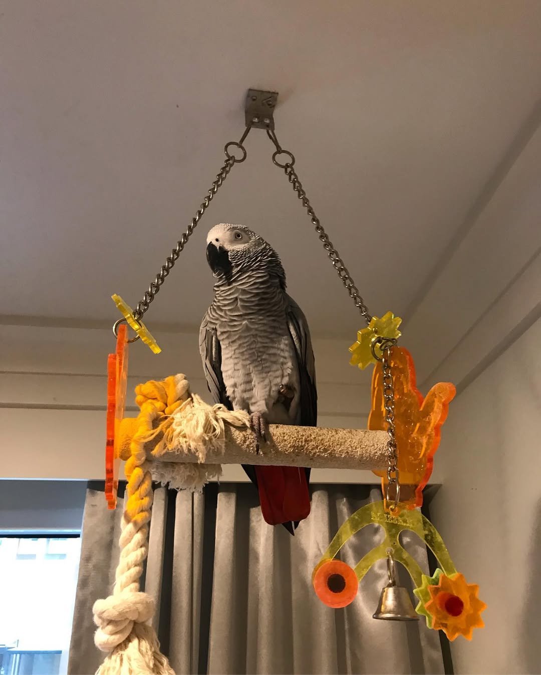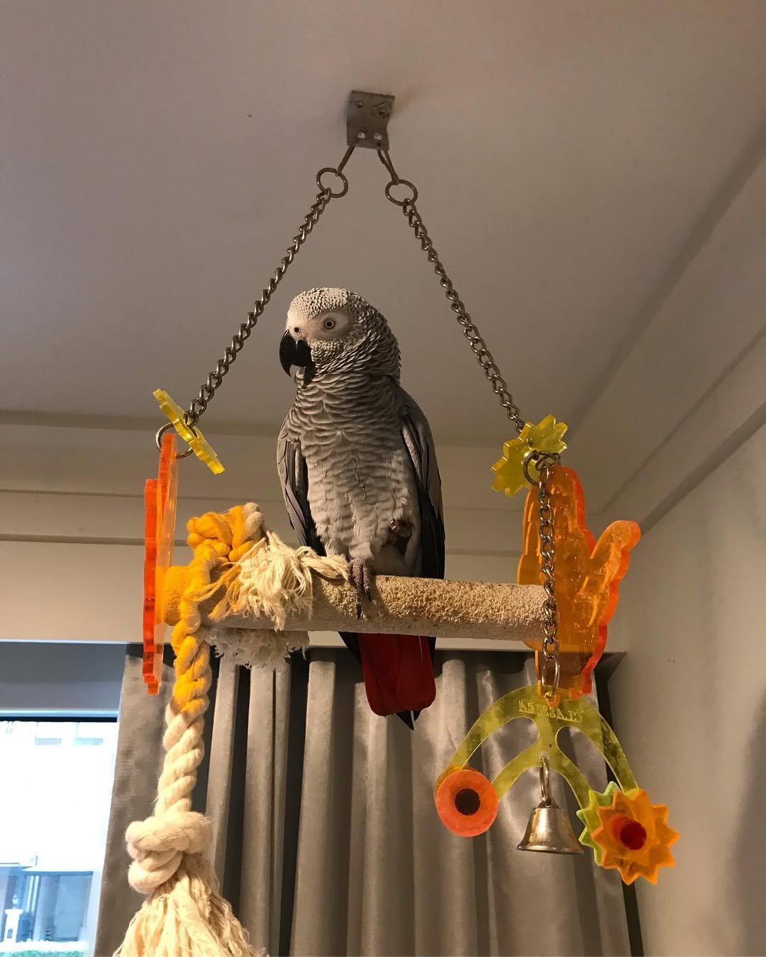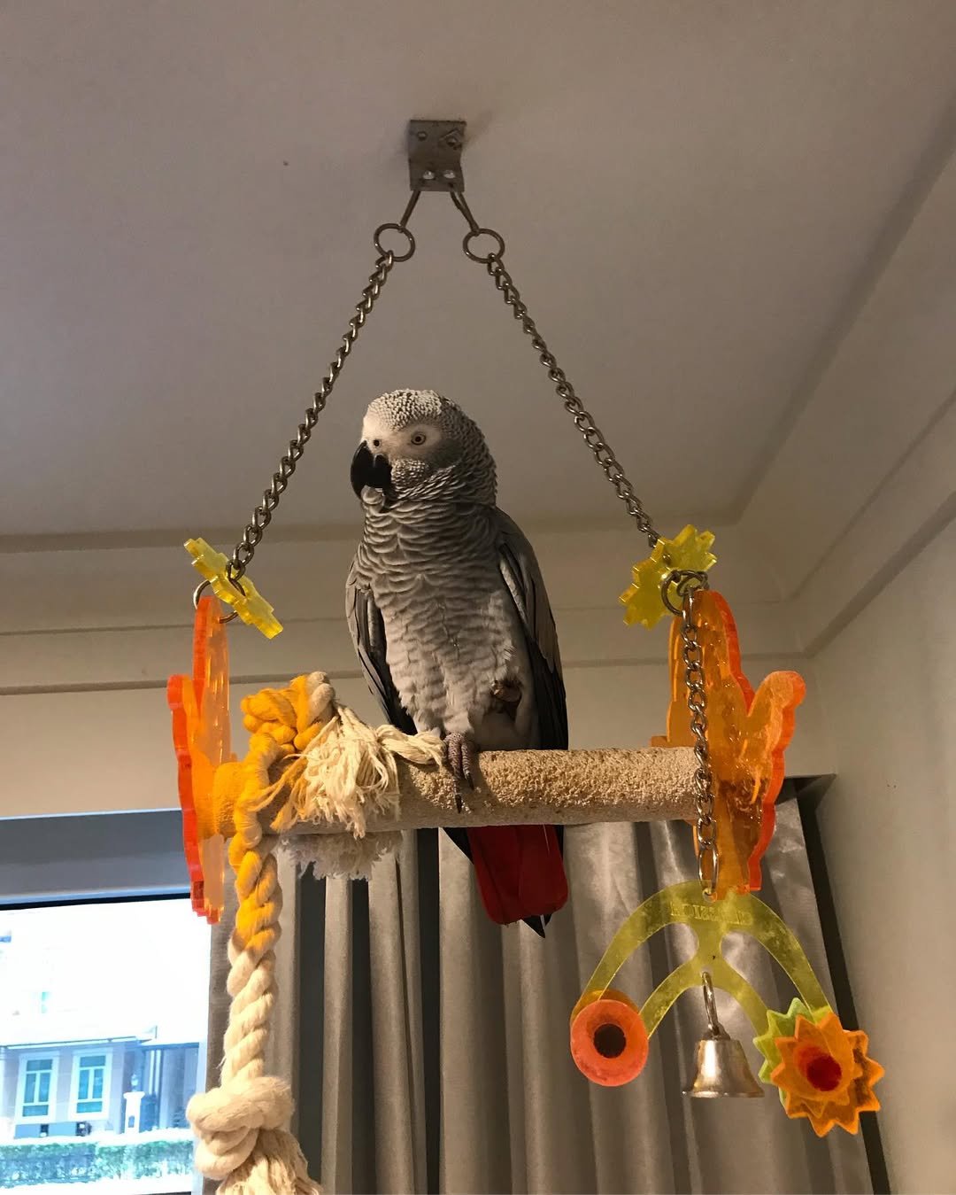 Congo African Grey parrots require mental stimulation, social interaction, and a balanced diet. Maggie thrives in environments where she receives daily attention and engagement, ensuring she remains happy and well-adjusted. She enjoys toys, perches, and puzzle feeders to keep her naturally curious mind active.